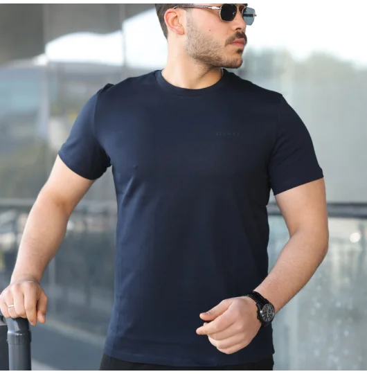 Basic Bisiklet Yaka Erkek T-Shirt Lacivert