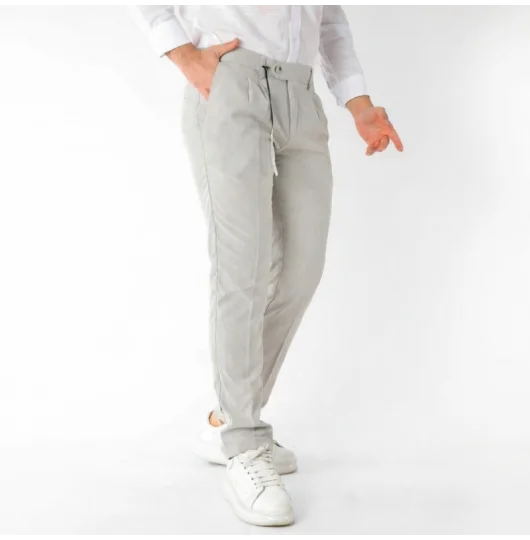 Slim Fit Dar Kesim Yan Cep Pileli Bej Kumaş Erkek Pantolon Bej