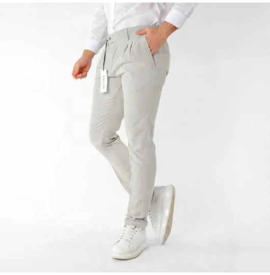 Slim Fit Dar Kesim Yan Cep Pileli Bej Kumaş Erkek Pantolon Bej, sade ve zarif bej rengiyle günlük ve klasik kombinleriniz için ideal bir tercihtir. Slim fit dar kesimi vücuda uyum sağlayarak modern bir görünüm sunarken, pile detayları pantolona şıklık katar. Bej rengi sayesinde gömlek, tişört ve ceketlerle kolayca kombinlenebilir.